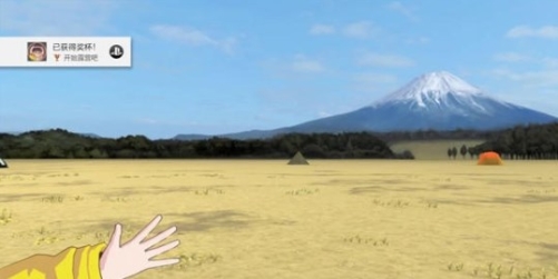 3、第一步所有正面对话结束后,可以拿出相机,对着“天上的飞鸟”、“富士山”、“抚子”选择其一进行拍照,拍照后会解锁“共享照片”这个奖杯以及部分和抚子的对话,随后放下相机,去观察除了飞鸟以外的其他几个事物,同样会触发另外几段和抚子的对话。完成后连续看三遍脚下的松球(山麓露营场松球是在主角左下方),可以解锁“你好/”的成就。全部完成之后就可以进入下一阶段了。