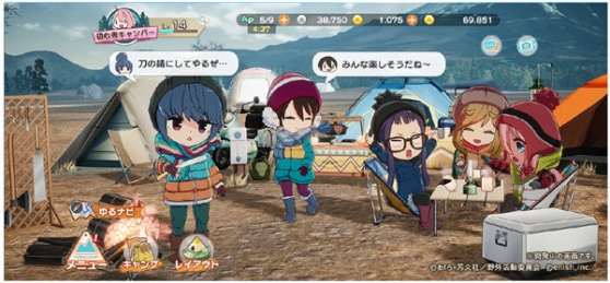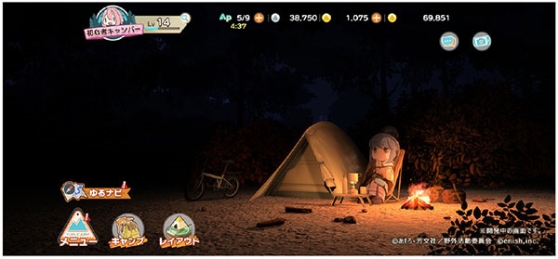 7、主画面可以自由展示获得的露营用具及料理。不管是要重现电视动画《摇曳露营》中的露营地,或是随喜好构筑出自己的露营地,能以自己的方式、随兴的打造露营地。