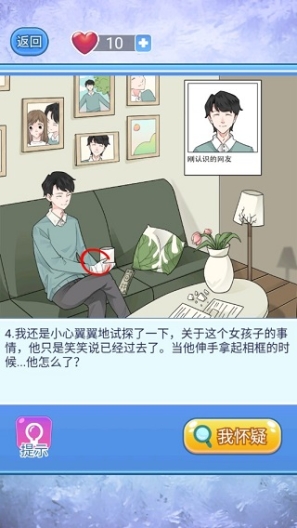 4、点击男人手上包裹着的纱布,点击【我怀疑】
