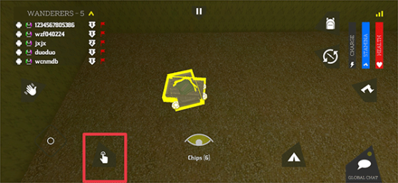 6、在游戏途中遇到道具后将屏幕中的眼睛对着物品后,点击左下角手指图标