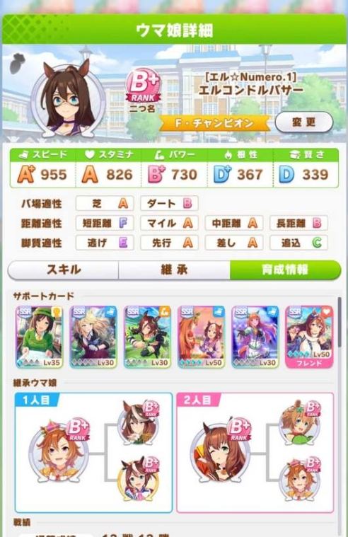 拥有较好的模板,训练速度适应性比较贴合。前期针对短距离比赛可以获得大量粉丝,后半部分可能会因为连续的比赛导致体力不支;