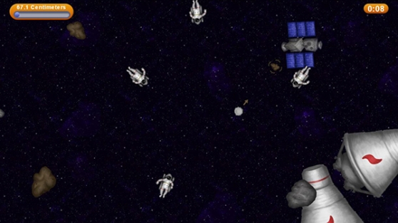 比如在第一小关,碰到太阳和类木行星会被吞掉,碰到飞碟或者被它打中会损失大小。