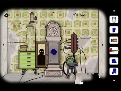 紧接着到了火炉房,同样是左上方的装置上拿到相片碎片,之后可以发现右下方桌子的一台收音机竟然是有电子钟的!上面显示着13:10.这个很重要,要记下来,拨动收音机也并没有更多发现。这时候我们迅速回到客厅,在中间大钟上调整时间,知道调为13:10分,此时下方的大钟柜子就能打开了,从里面可以取得最后一片相片碎片同时镜子里出现一个恐怖的黑色人影,不用管他,回到火炉房,用火柴点燃木头,拼好拼图,放入方块就通关了!