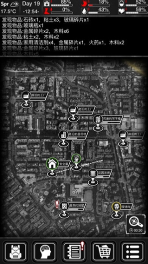 3、第一天刷资源点必出食物:食品店、医院、加油站、首推医院、工厂、五金店、服装店、武器店不要去,没有食物。其它的资源点食物少一些。