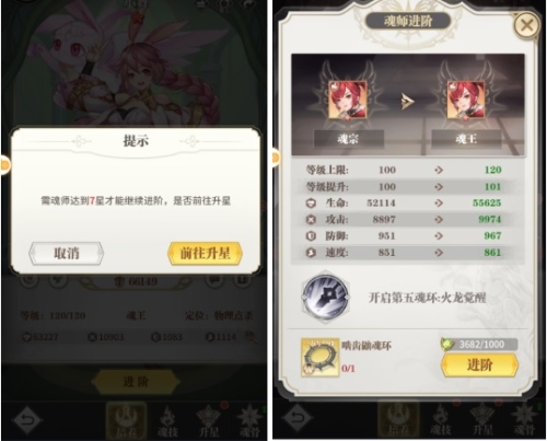 每次升星可提升魂师级别,并增加魂师攻击成长和生命成长的提升。