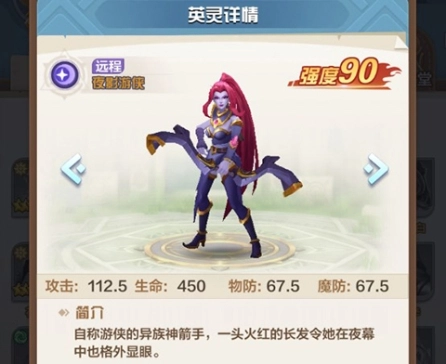 夜影魔箭:夜影游侠标记当前生命值最低的敌人,短暂蓄力后对敌人造成10%攻击力+10点的物理伤害并降低20%的物防,持续3秒,如果命中目标身上带有灼烧状态则会额外造成一次伤害,该技能无法被闪避。