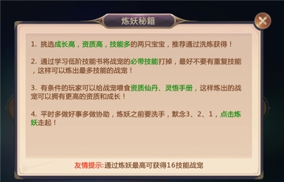 资质和成长由消耗战宠的平均资质和平均成长决定3.新战宠的等级为参与炼妖战宠的等级的平均值