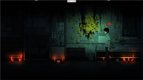 8、回到4楼,用老黄符对左边的打印机进行操作,然后用照片获得纸扎人,下到3楼往右走,把纸扎人放在盆里烧掉,然后查看一堆纸扎人,小旺眼睛流血后往右走,去2楼。