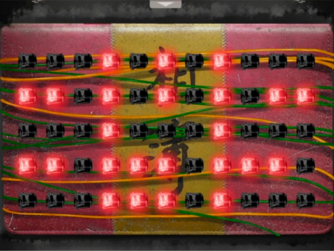 9、在2楼往左走,得到提示(茧),回到4楼往右走,根据提示打开桌上的盒子,获得螺丝刀。下到二楼,用螺丝刀打开电箱,完成小游戏打开左边的电箱。