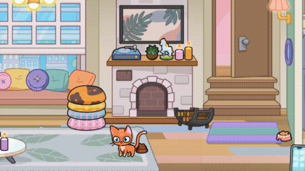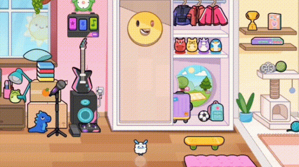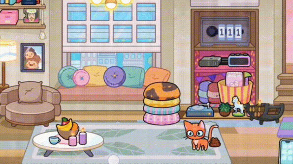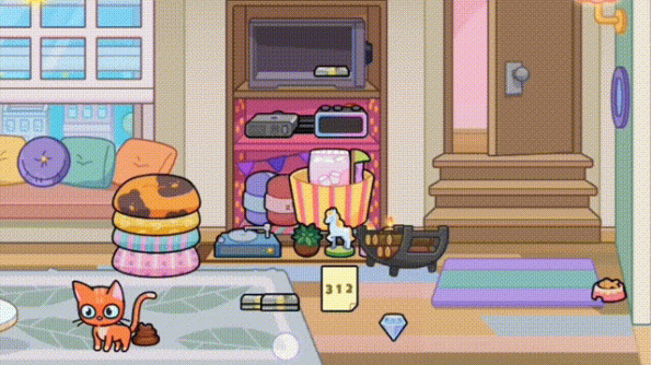 同样是刚才的场景,我们打开地上的夹板,会有一袋小猫软糖,多点击几次就会冒出紫色的软糖