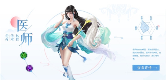 远程法术治疗职业,医师拥有加血、解控、复活、反隐的多种辅助技能,无论PVE和PVP都必不可少的团队辅助,同时拥有极强的自保能力与持续伤害输出。在对抗BOSS时,还可使用幻攻击造成可观的伤害。