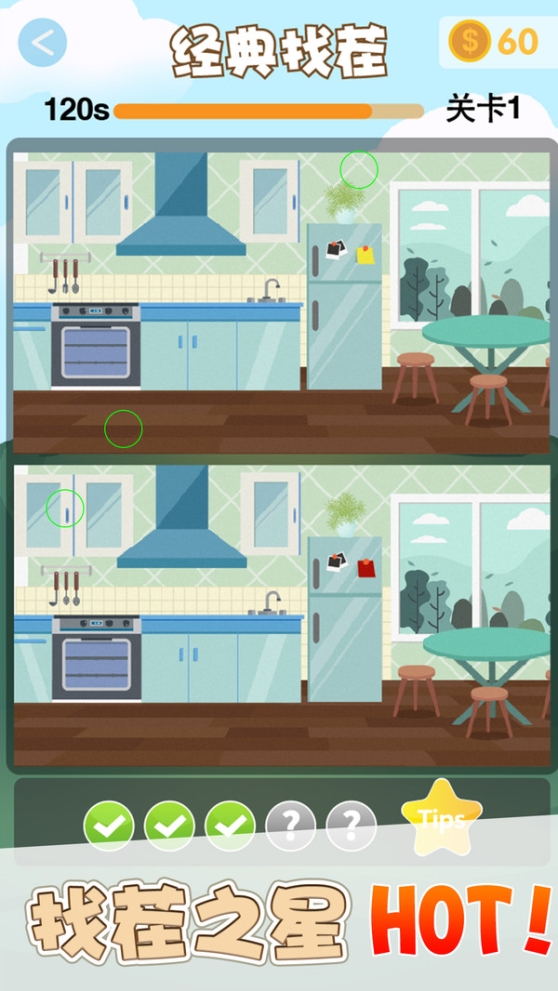 找茬之星是一款流行的手机休闲益智游戏,以其高品质和采用的顶尖引擎技术而著称。游戏玩法独特新颖,玩家可以通过收集各种道具来揭示游戏中的所有秘密。除了多种游戏模式外,还支持与朋友竞赛。这款游戏非常适合儿童,玩家需要在限定时间内找出游戏关卡中的差异。还有更多精彩的游戏模式等待你的发现。