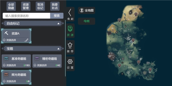 2、玩家能够运用鸣潮地图资源工具十分直观地查询各种资源的散布状况。