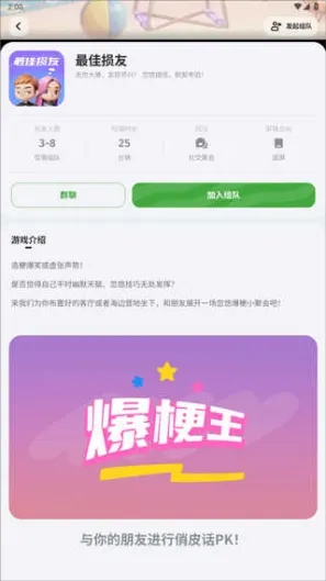 4、游戏规则:分为【爆梗王】和【真的假的】两个模式。在【爆梗王】中,你需要回答2个问题,你的答案会与另一位玩家的回答进行PK,而剩余玩家负责投票自己更喜欢的答案,越多得票 越多得分,分数最高者获胜。在【真的假的】中,首先真实得回答一道关于自己的问题,随后捏造关于其他玩家的问题答案,目标以假乱真!我们会混合真实答案所有的虚假答案,来吧福尔摩斯们,看你能否选出真相。