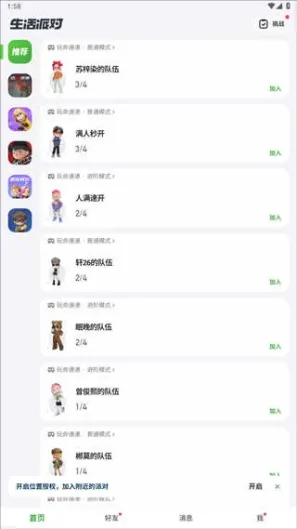 首页的每个角色,都代表一个平台上的玩家。你可以点击感兴趣的角色,查看状态,聊天,加入游戏等。