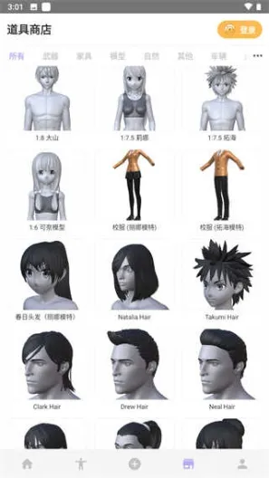 模型包括写实和动漫风格,头身比包括1:3、1:5、1:6、1:7、5和1:8。我们有许多道具,包括基本形状、家具、武器、配件、乐器等。
