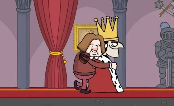 3、例如,在一关中,国王需要向国民发表演讲,但他却紧张得满头大汗,说了一些完全不相关的话,搞笑至极。