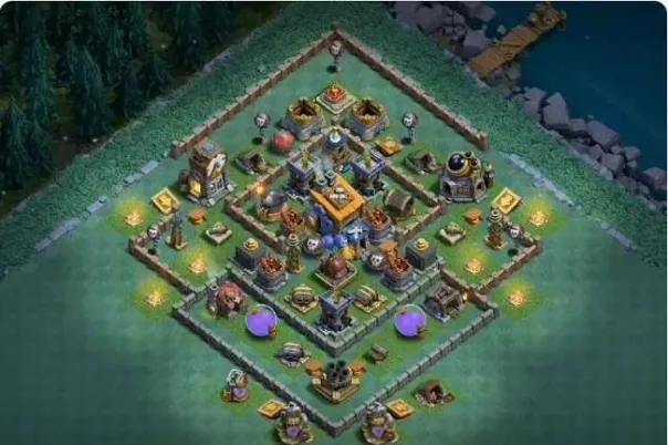 目前建筑大师基地比较流行的阵型类型之一,虽然看起来比较好下手,但阵型中部的火力交替安排得很科学,基本能克制所有平推流派,但使用时务必要保证巨加、多管、巨石在高等级