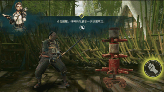 4、进入后有一个新手教程,点击按钮,即可快速攻击;