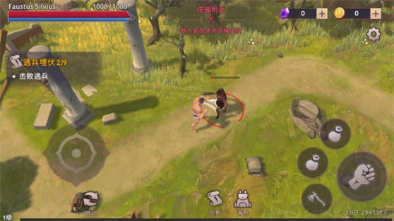 1、进入角斗士罗马求生,左手控制人物走向,右手就是各种操作;