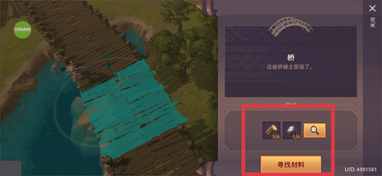 4、若材料不足时,你需要在地图中去材料所需的材料,收集完成后即可进行修复