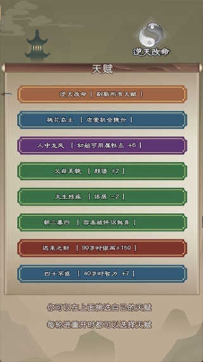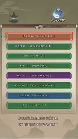 2、选择一个天赋,点击逆天改命可以刷新当前所有天赋。