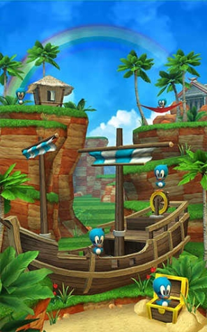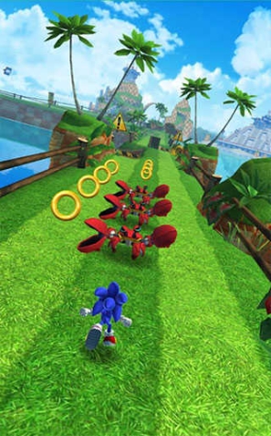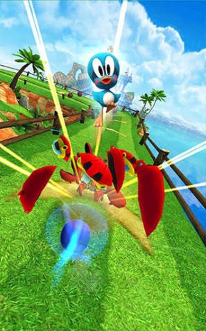 第一,无需等待一次操作完毕之后再进行第二次。这是什么意思呢?很简单,例如当你向上跳跃躲避障碍时,突然发现它后面竟藏着一只金螃蟹,此时需要果断地向下划动,立刻打断跳跃状态,索尼克会勐地砸向地面进入翻滚状态,效果看上会非常酷。