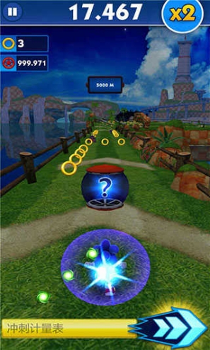 通过学习游戏的新手教程,你会知道当我们向下划动屏幕时,索尼克就会用经典的翻滚动作打击敌人,这个操作同样可以用来钻过桥洞等障碍。但很多玩家没意识到,向下滑动带来的短暂加速效果极为有用,尤其当你获得“吸铁石”道具时,多使用滚动技能会吃到很多的“金环”。另外,假如前方有紧连着的多个“桥洞”需要钻过,你也只需向下划动一次就行,索尼克的滚动时间会被显着加长。