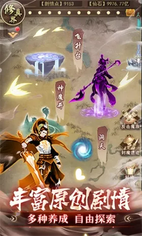 原创剧情:十万字的原创剧情,嵌入游戏剧情和玩法中,让你感受宏伟的修真世界!