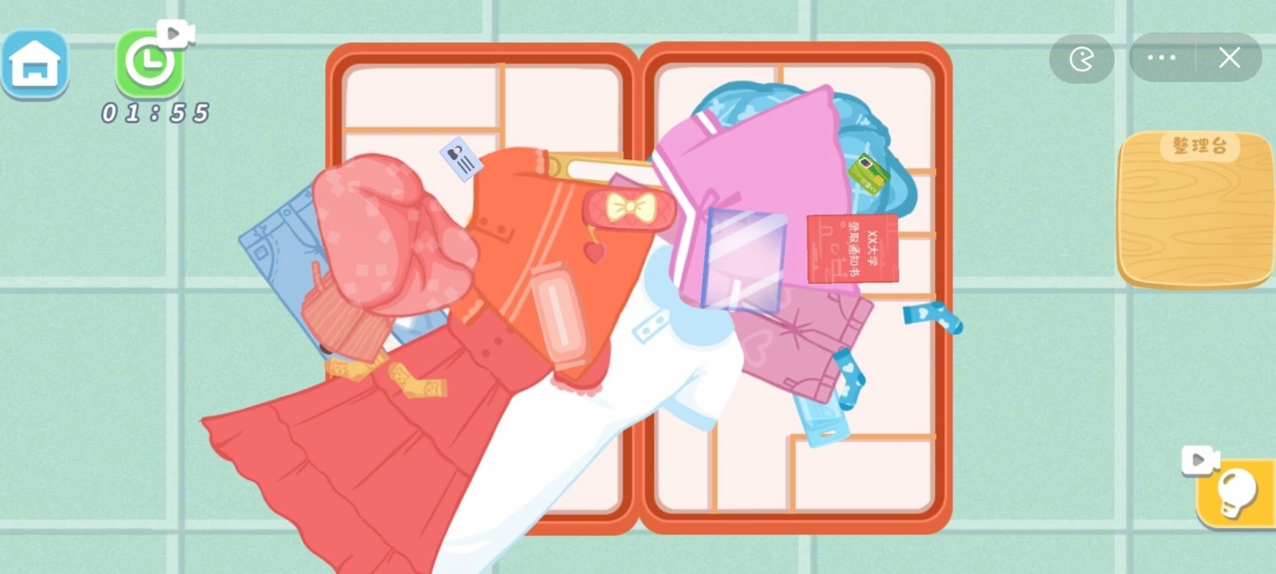 2、开始一系列的收纳挑战,卡通画风打造,玩起来相当的减压。