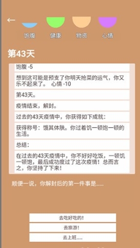 1.这游戏通过简单的文字方式分享了疫情隔离的一种生活百态。