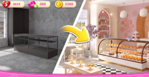 在对面包店进行翻新时,可以挑选多种装饰风格和主题,每种装饰元素都独具特色。在面包店翻新游戏中,通过消除的方式获取所需的材料,你可以随意搭配这些材料,从而设计出独一无二的店铺外观。