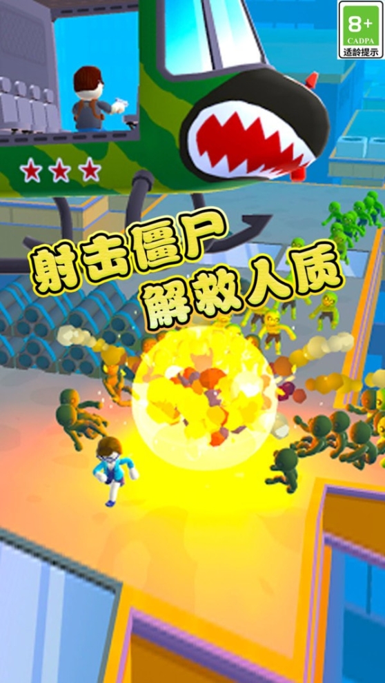 采用火柴人风格的画面,主角在直升机上执行救援任务,玩家需营救一人。此外,玩家通过点击屏幕来消灭追击的敌人。除了基础的射击操作,还加入了更多样的击杀手段,从而提升射击的乐趣。