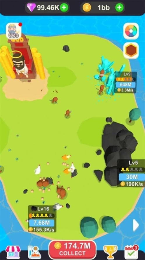 空闲初始世界玩法1、玩家可以建造住房、商店、工厂等建筑来吸引更多的居民和商贩,同时也可以升级这些建筑以提高各种资源的产出效率。