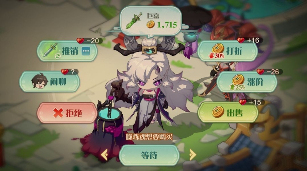 无论是游戏中的各族修士NPC,还是跟你一样的其他掌门人,都有可能前来你的宗门串门并购买法宝,我们的目标是:没有一个法宝会被浪费!通过不断地交易,你与修士NPC、其他掌门之间的信赖也会不断加深,让中州灵境更加欣欣向荣。