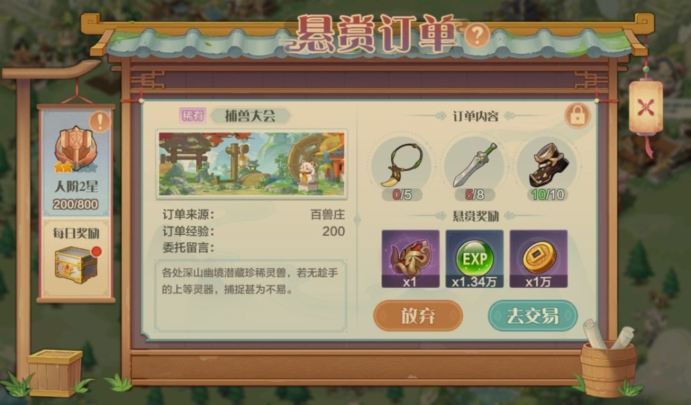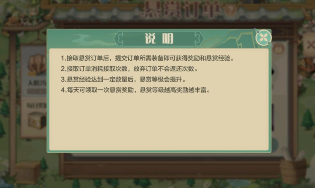 (2)悬赏在接取之前先看下境界提升任务跟特殊材料的库存,然后再看悬赏第一个奖励,先看能完成,其次选奖励最好的,如果接取完成不了取消的话,悬赏的次数就浪费一次。