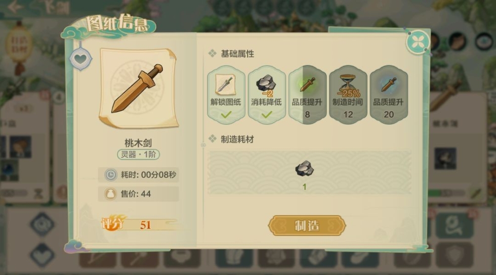 基础属性升满即为精通,举例桃木剑达到精通,那么打造装备出来最低就是精良级,也就是蓝色。