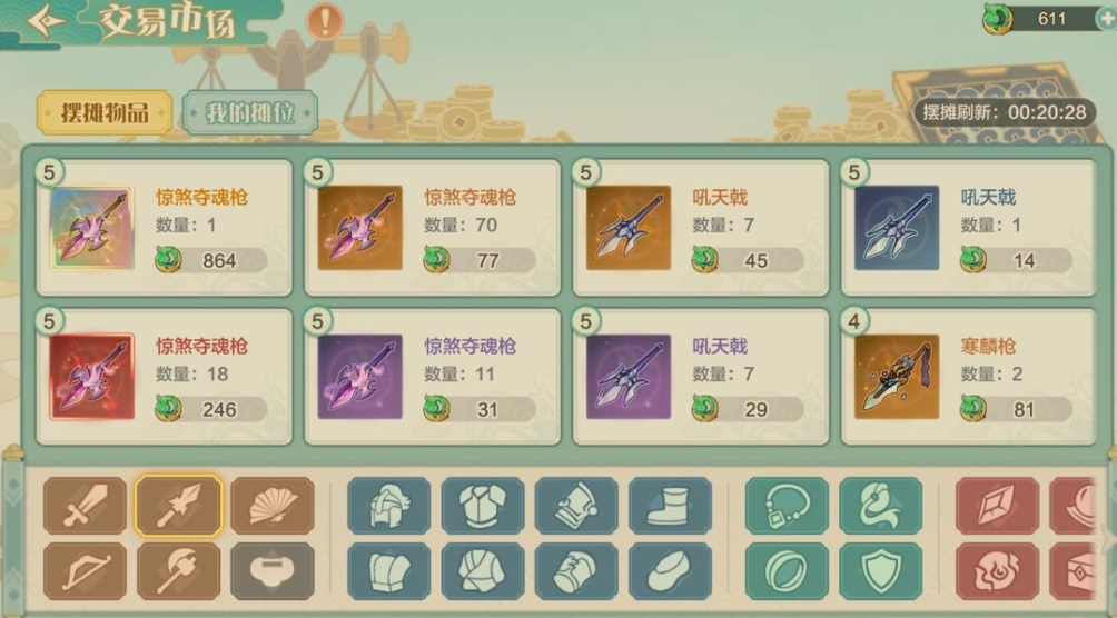 (2)摊位一共只有9个,初始免费获得1个摊位,后续摊位需要绑玉或者仙玉解锁