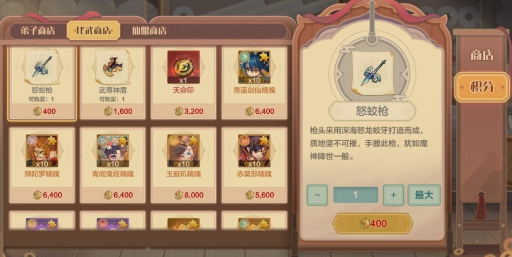 (4)弟子商店: