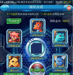 合成炉可以用5个同星级的精灵随机合成一个高1星级的精灵。这是游戏中获得六星七星强力宠最为常见的方法,只要你有足够的精灵和金币,六星七星强力宠立马召之即来。