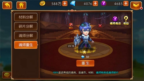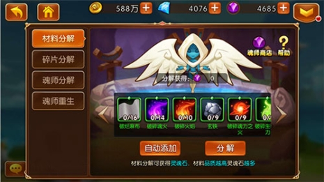 游戏加入了英雄商店等特定商店,我们可以在其中用英雄粉尘购买想要得到的英雄碎片。而英雄碎片的获得,除了副本奖励和成就系统之外,其中最为方便的方式就是重生天使了。在重生天使功能中,游戏主要将它分为了四个小模块