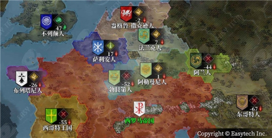 “蛮族入侵”、“拜占庭崛起”、“维京传奇”,各方势力风起云涌。“欧陆战争”系列首次採用不可定阵营模式的征服外交系统,可以通过签订通行、同盟等协定来拉拢其他势力。建设城市提高物资产出,研究政策改变国家方向,变更执政官获得更多税收。历史事件的出现将影响战场的局势,完成任务获得战场内的奖励。