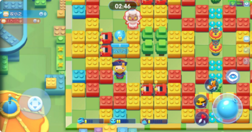 积木地图中盛产的道具是“能量鞋”和“防御头盔”,大胆的前往地图的中央,利用钉子装置,灵活巧妙的完成击杀吧。