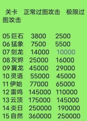 以下数据作为参考,实际过图也需要参考减伤和血量等,除非你是手法大神,无伤过图。