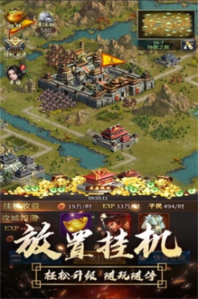 攻城作为游戏的主线玩法不单单能提升我们的挂机的各类收益还能获得玩家所需要的各类武将碎片和材料奖励,还是帮助玩家了解我们游戏剧情的重要途径之一,剧情从一开始的结义杀贼到后面的黄巾之乱都是已历史为基础加以艺术加工而来的!使玩家能身临其境感受到三国时期群雄争霸的场面!攻城画面更以一座一座城池为大关卡组成的一整张宏大的天下地图!随着战斗的推进,地图也在移动,玩家攻城的进度在地图中更是一目了然!