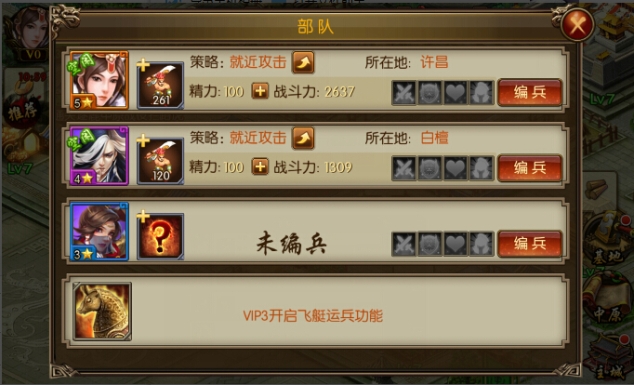 在主城中,点击进入兵营,即可进行兵力招募。每次招募都需要消耗一定的资源和金币,以及一定的冷却时间。不过一旦招募,小兵就会立即出现在主城区的练兵场中,各位主公就可以立即调兵遣将了。