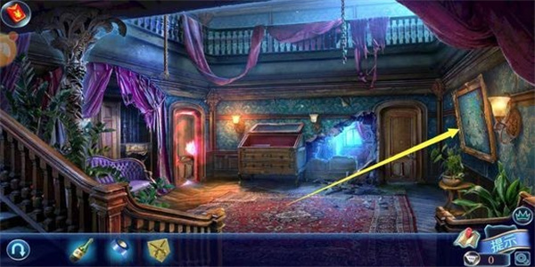 6、未解开:右边墙上的画显示油漆下面有东西;提示胶带卡里面了;二楼栏杆处有个类似于鸡毛掸子的东西需要射下来,但是十字弓没有箭啦。