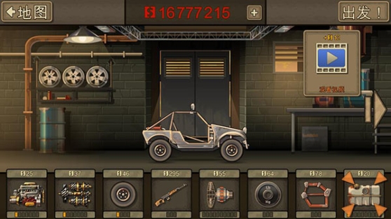 游戏的细节做的很棒,在升级界面中,当你升级引擎或变速箱时,在战车的前端会有略微的下沉,在战车行进的过程中,重量分配不均就会容易后翻或前倾影响车速,这个时候就需要在车库里购买升级重新配重,这对战车的稳定性十分重要。在升级轮胎的前后对比中,上坡时的爬力会明显的体现出来。小编认为武器配置设计的不是很好,武器是自动发射的,一枪一个,打完就废了,而且只能够对僵尸进行射击,如果把它改为玩家手动触发能够升级为更强大的火炮就更爽了,而且对障碍物和建筑物业能够进行攻击的话,那画面感就更是上了另一个境界了。