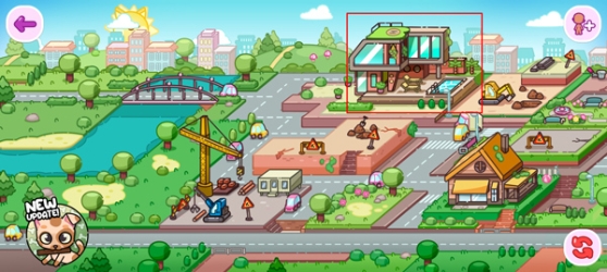 界面中包含了许多卡通角色和游戏场景,玩家可以自由与这些角色进行互动,例如和它们玩游戏、与它们对话等等。