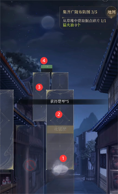 5、依次点击卡牌,即可在草堆获得花银匣,开启获取第三份广陵布防图。